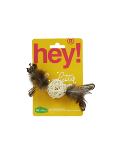 HEY! BOLA DE RATÁN NATURAL CON PLUMAS Y CAMPANA INTERIOR 3,8 CM