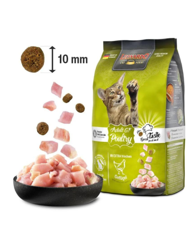 La receta de LEONARDO® Adult Poultry GF no contiene gluten ni cereales. En esta composición el amaranto, rico en nutrientes, sustituye los cereales. LEONARDO® Adult Poultry GF es la solución perfecta para gatos con intolerancias alimentarias o tendencia a padecer alergias.