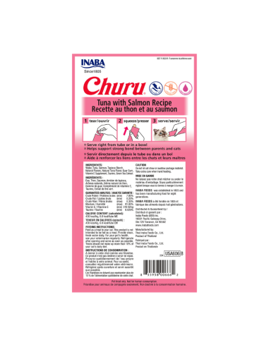 Agua, atún, tapioca, salmón, sabores naturales, sabor a atún natural, goma guar, taurina, suplemento de vitamina E, extracto de té verde.