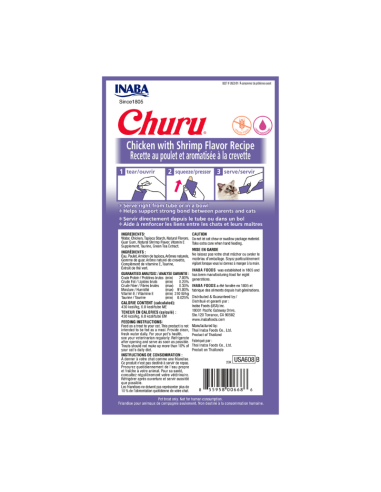 Agua, pollo, tapioca, sabores naturales, sabor natural de camarones, goma guar, taurina, suplemento de vitamina E, extracto de té verde.