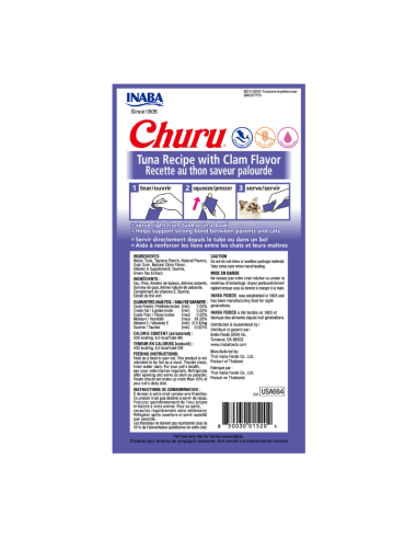 Agua, atún, almidón de tapioca, sabores naturales, goma guar, sabor almeja natural, suplemento de vitamina E, taurina, extracto de té verde.