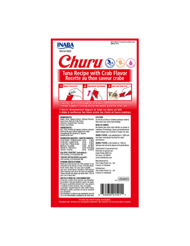 Agua, atún, almidón de tapioca, sabores naturales, goma guar, sabor a cangrejo natural, suplemento de vitamina E, taurina, extracto de té verde.