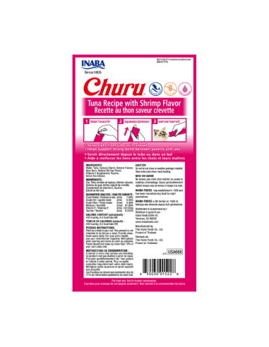 Agua, atún, almidón de tapioca, sabores naturales, goma guar, sabor a camarón natural, suplemento de vitamina E, taurina, extracto de té verde.