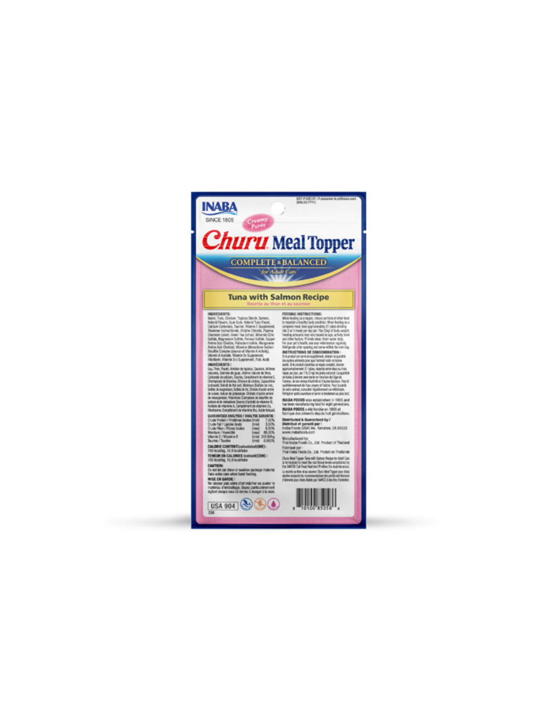 Completamente equilibrada, para ser exactos. Hemos tomado la misma textura cremosa de los premios Churu Lickable Cat Treats que tanto les encanta y la hemos combinado con todas las vitaminas y minerales de un alimento —todo en un práctico tubo de una sola porción.