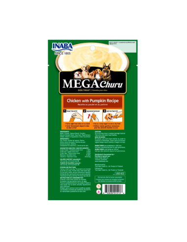 Ingredientes: Agua, pollo, almidón de tapioca, calabaza, saborizante natural de pollo, goma guar, extracto de levadura, gelatina, suplemento de vitamina E, extracto de té verde.