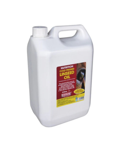 Suplemento nutricional para equinos a base de aceite de linaza prensado en frío, fuente natural de ácidos grasos Omega 3.