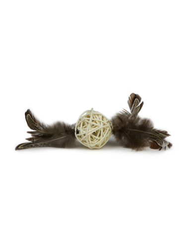 Nuestros amigos felinos se divertirán como un pez con el juguete para gatos Hey!. Fabricado con materiales totalmente naturales, esta tentadora bola de ratán natural con plumas es el juguete perfecto para que el gato juegue a golpearlo y perseguirlo. Diseñado para estimularlo mental y físicamente, con campana incluida y las plumas se suman al entretenimiento.