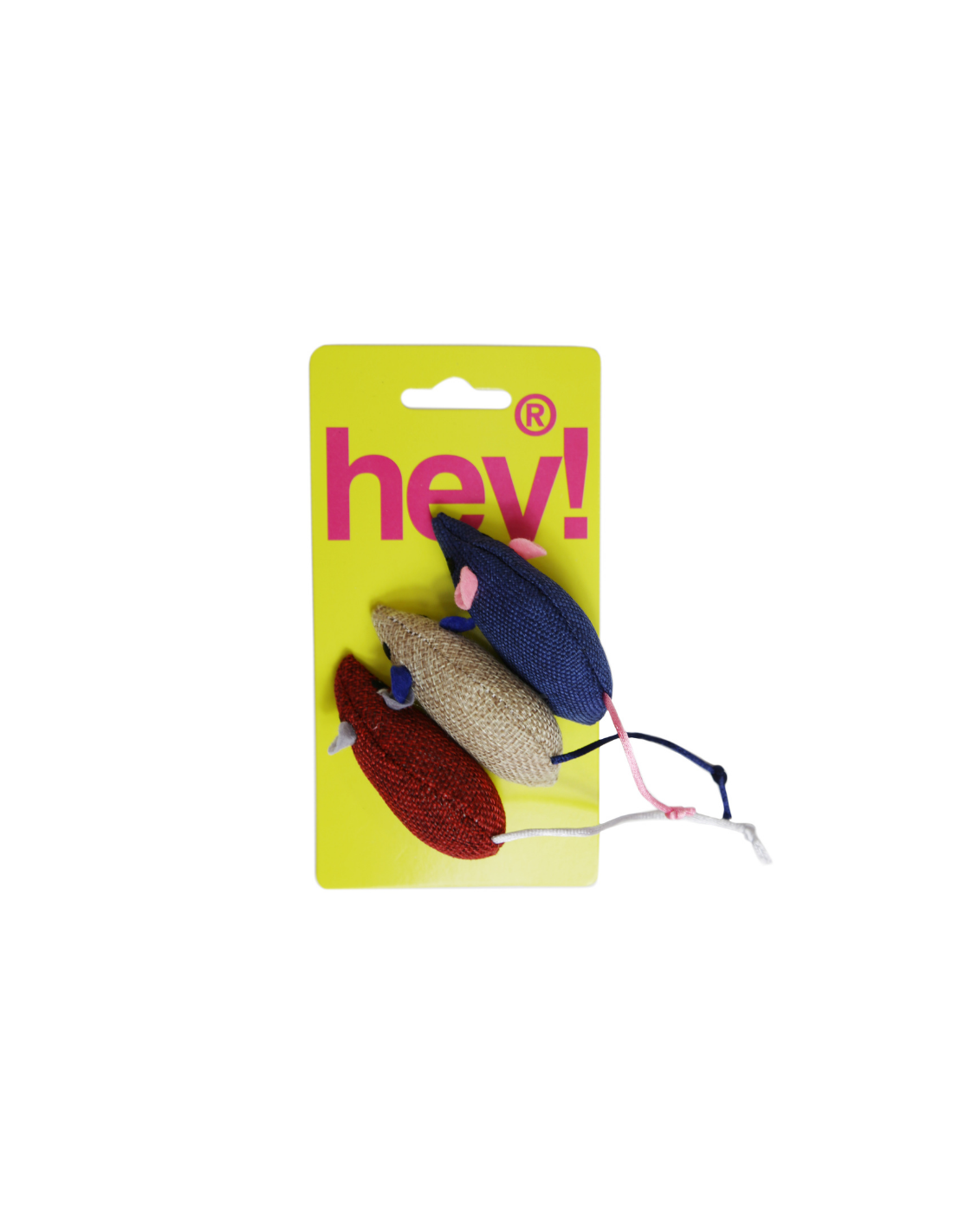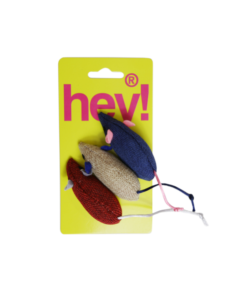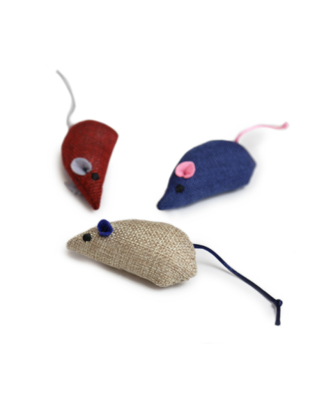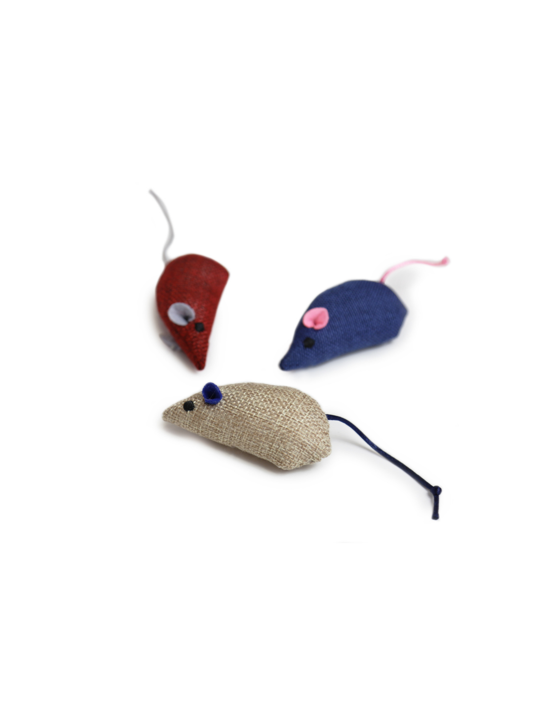 Set de 3 ratones de juguete diseñados para estimular el instinto natural de caza de tu gato. Están fabricados con materiales de tela de aspecto natural y cuentan con colitas que invitan a perseguir, atrapar y patear, manteniendo a tu gato activo y entretenido.