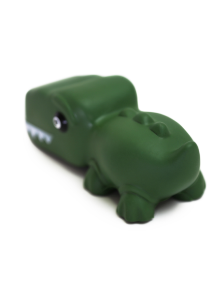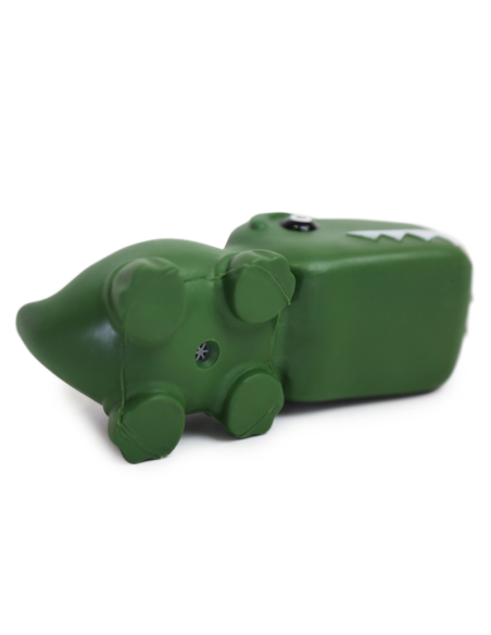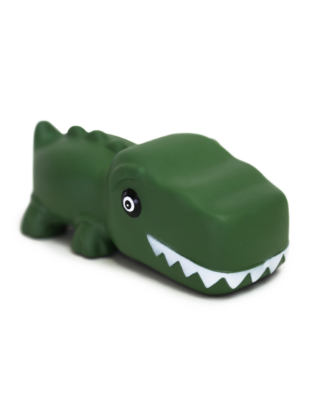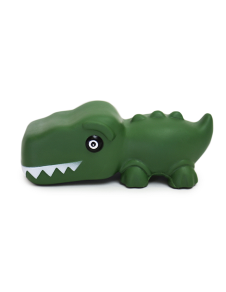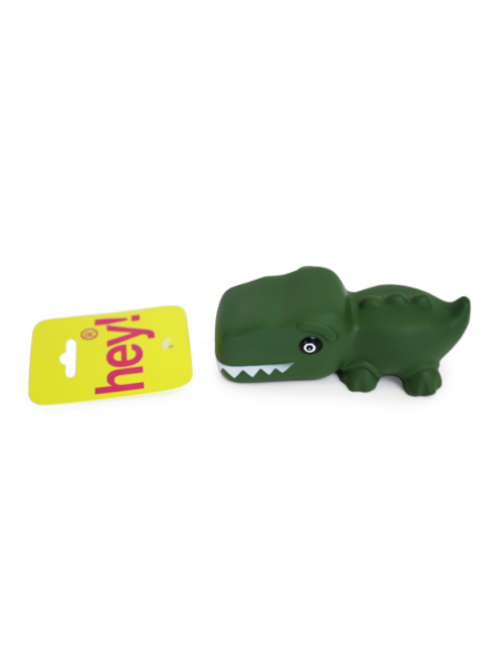 Juguete para perros con forma de dinosaurio, fabricado en vinilo. Incorpora un sonido de chirrido que se activa al presionarlo, estimulando el interés del perro y fomentando el juego.