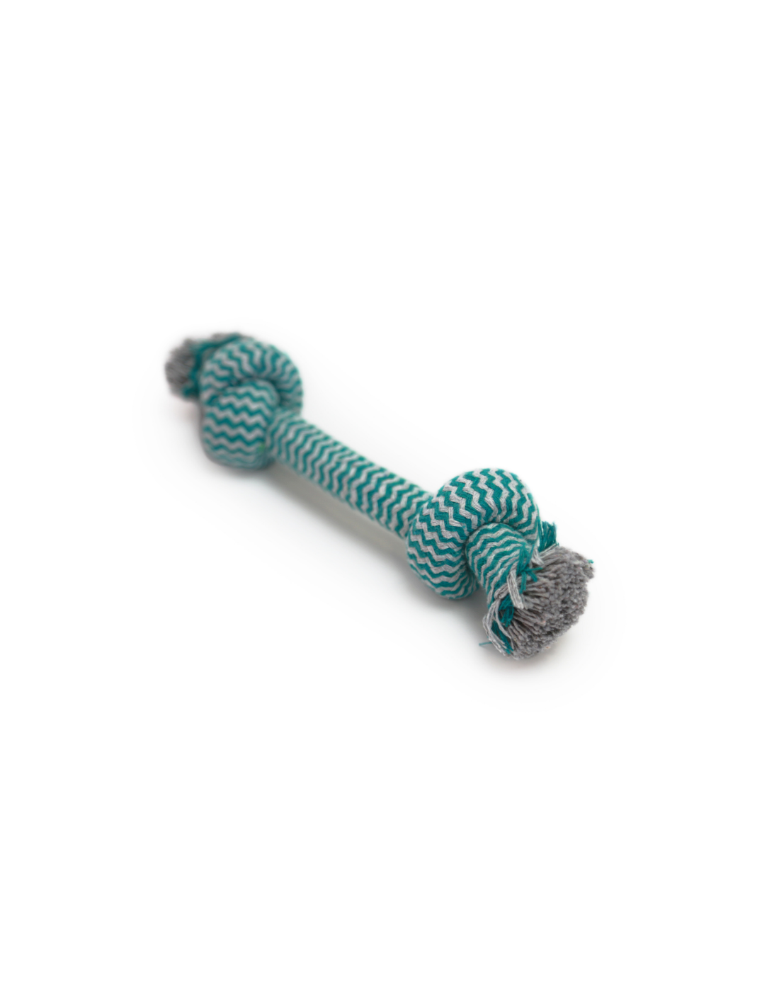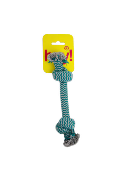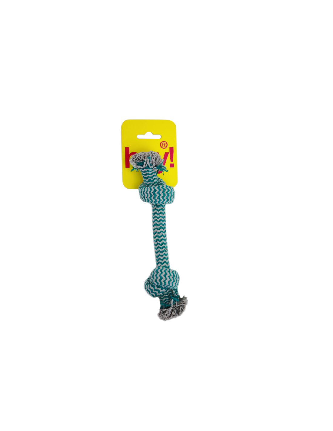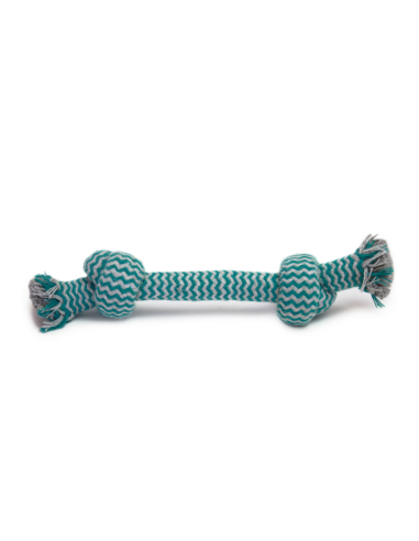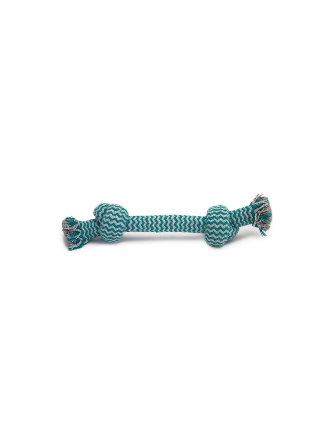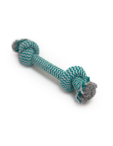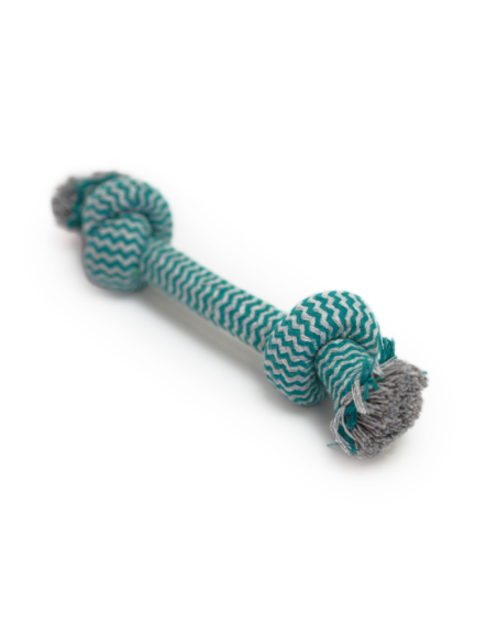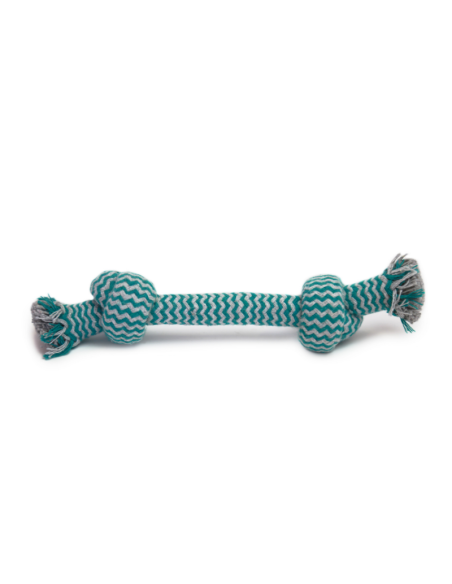 Cuerda para perros con dos nudos en los extremos, ideal para juegos de tirar, morder y lanzar. Su diseño resistente ayuda a mantener al perro entretenido y activo durante el juego.
