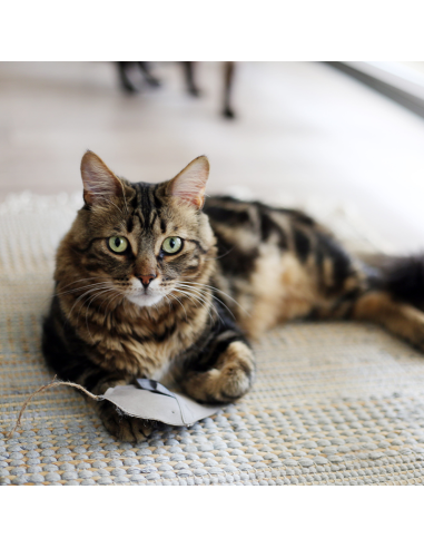 El juguete de cuero de hey! para gatos es lo suficientemente fuerte como para soportar los juegos bruscos. Este juguete duradero fusiona el cuero y el yute para crear dos capas para una mayor resistencia. Las costuras están doblemente cosidas con un hilo de alta resistencia para una mayor protección contra los masticadores.