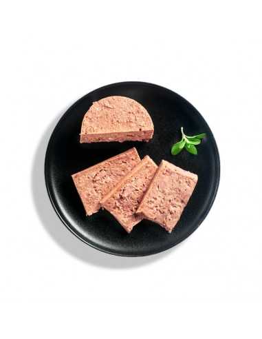 Carne y derivados animales (65 %; de los cuales ave 40 %, ternera 25 %, caldo de carne 29,5 %); huevo y derivados (huevo entero 4 %); minerales (1 %); aceites y grasas (aceite de salmón 0,5 %).