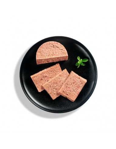 Carnes y subproductos animales (40 % + caldo de carne 34 %); pescados y subproductos de pescado (25 % pescado marino); minerales (0,5 %); cáscaras de huevo, secas (0,5 %).