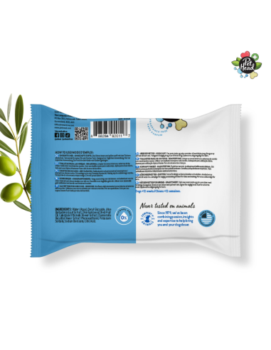 Toallitas biodegradables, a base de plantas y sin plástico, que contienen aceite de oliva para hidratar y calmar la piel. Formuladas con decil glucósido, un agente limpiador de origen vegetal para obtener los mejores resultados, y extracto de manzanilla para nutrir la piel.