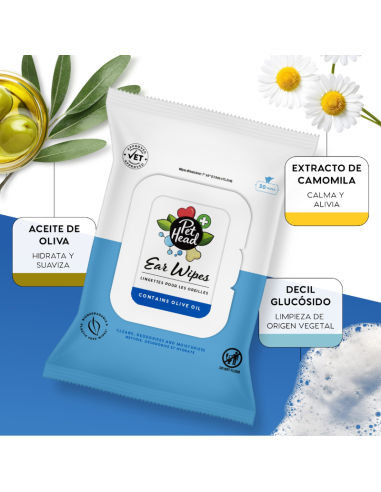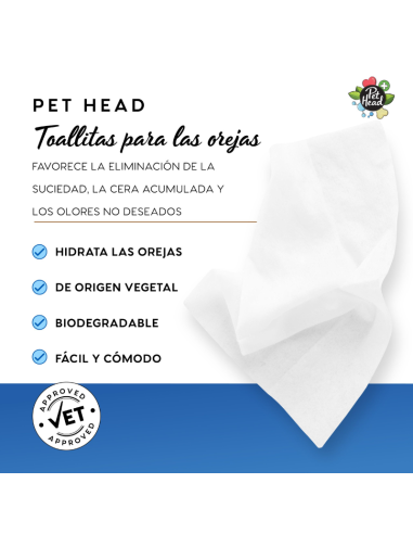 Diseñadas para ayudar a eliminar la acumulación de cera, las toallitas para oídos de Pet Head son una solución conveniente para mantener una buena rutina de higiene para tu perro. Pueden usarse a diario para obtener los mejores resultados.
