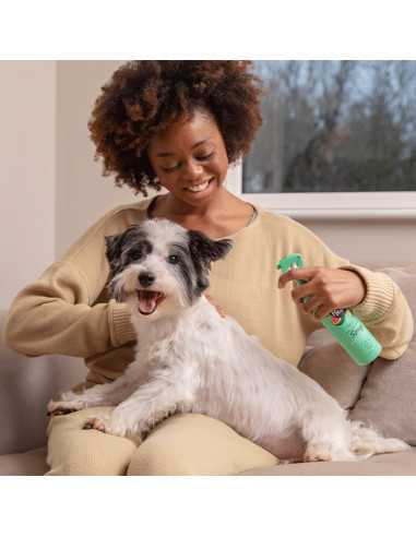 Spray Furtastic elimina los nudos sin esfuerzo y deja el pelo sedoso, suave y sin enredos. Diseñado específicamente para pelajes largos y rizados y está lleno de manteca de karité que funciona como un súper hidratante. Esto eliminará cualquier nudo pesado y obstinado. El aceite de melón de albaricoque y Kalahari actúan para hidratar la piel y el pelaje para dejarlos más suaves.
