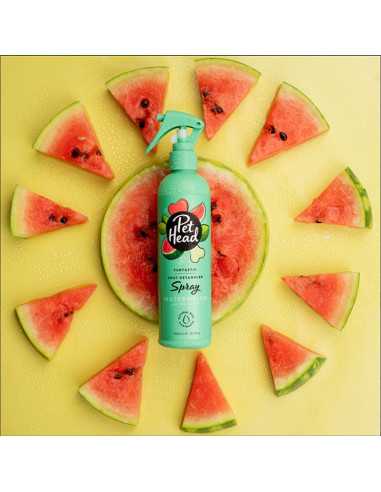 Con aroma a sandía, con una mezcla fresca de diferentes notas frutales que incluyen melón, fresa y melocotón con un toque de vainilla para dejar a tu perro con un olor fantástico.