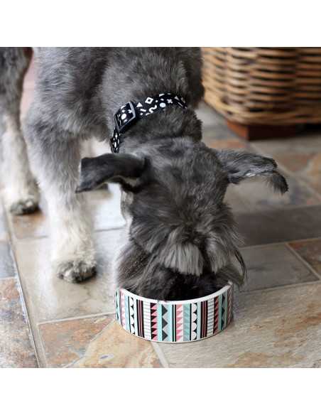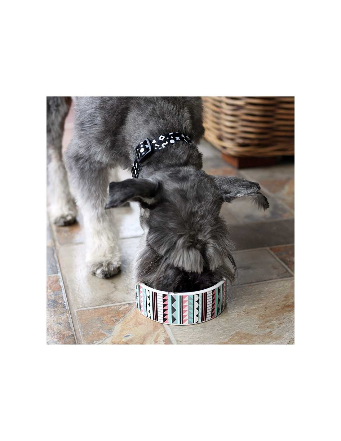 Regale a su mascota un lindo plato de cerámica estilo étnico de BRNX. Este encantador cuenco de cerámica para perros y gatos es de fácil cuidado y lavable a mano no retienen los olores como el plástico y sueltan la comida seca rápidamente para facilitar la limpieza. Ideales para la comida seca, la comida húmeda y el agua, estos cuencos seguro que son un éxito para su hambriento amigo de cuatro patitas.
