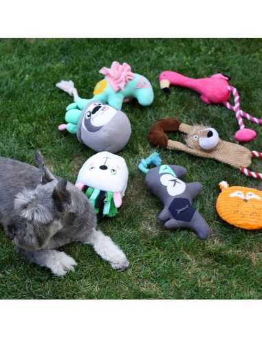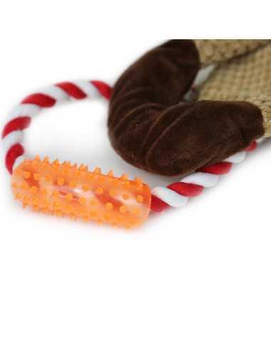 Los juguetes BRNX son juguetes resistentes e interactivos para tirar y sacudir que encantan a los perros. Cada juguete tiene cuerdas anudadas en el interior para una sensación realista, que se extienden fuera del juguete creando asas para tirar en ambos extremos. Este diseño único crea una cautivadora variedad de texturas y resistencia que los perros adoran, y contiene un chirriador para mayor diversión.