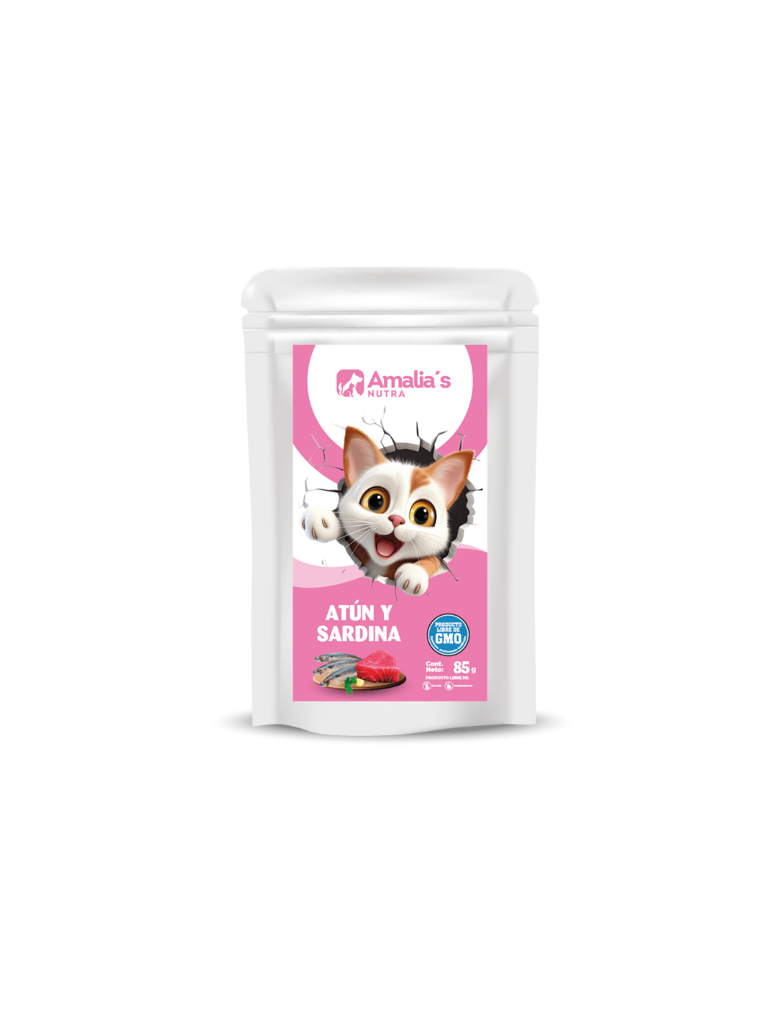 Es un paté semiblando con trocitos de Pescado de exquisito sabor. Se juntan los trocitos de atún pre-cocido con la carne de Sardina y la proteína de Soya, Luego se mezcla con el líquido de cobertura que contiene Agua, Goma Guar, Vitaminas y Minerales y el saborizante a Salmón.