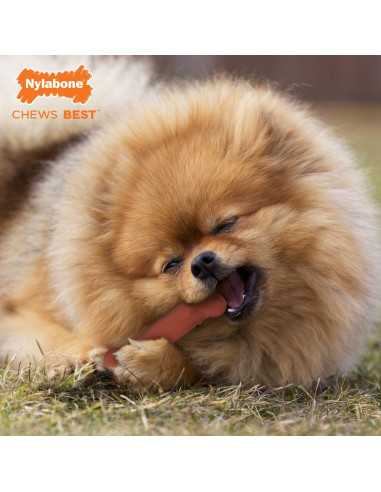 En la historia del lenguaje, nunca ha habido tres palabras más perfectamente combinadas para dar alegría a cualquier cachorro: hueso de tocino para masticar. Los duraderos juguetes para perros Bacon Bone Chew de Nylabone mantienen ocupados los mordedores (y las felices papilas gustativas) con un resistente material de nylon que sabe a bacon. A medida que su mejor amigo roe, levanta cerdas que aumentan la felicidad del tiempo de masticación, limpia los dientes y refresca el aliento, ¡todo al mismo tiempo!