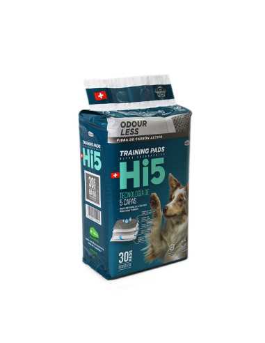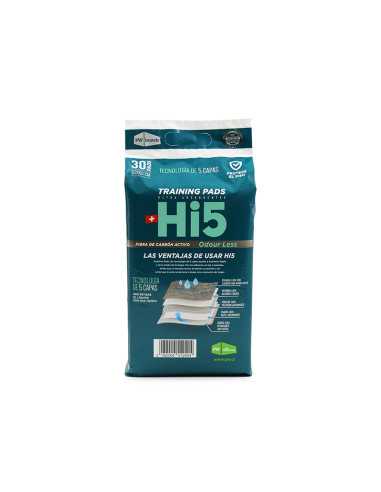 Los nuevas sabanillas Hi5 de carbón activo están fabricados con una tecnología ultra-absorbente de 5 capas de protección para bloquear la humedad y resistente a prueba de fugas para evitar que la humedad llegue al suelo. Cada sabanilla tiene 5 gr. de gel y absorbe 550 ml de agua y 350 ml de solución salina.