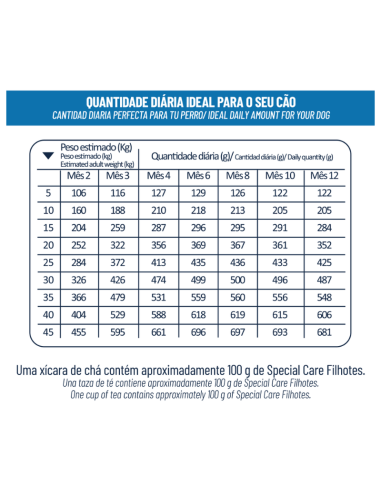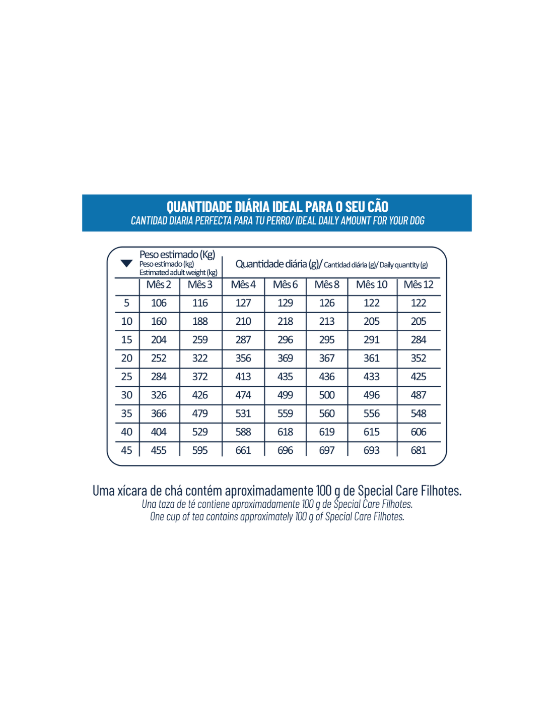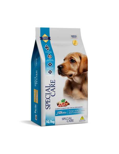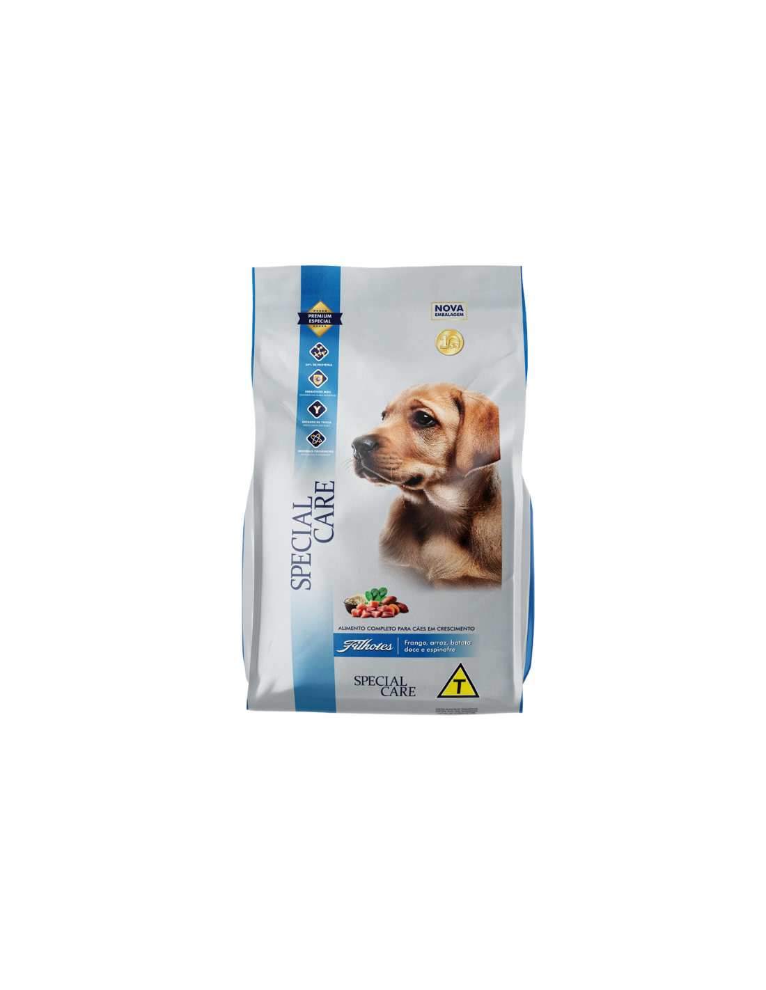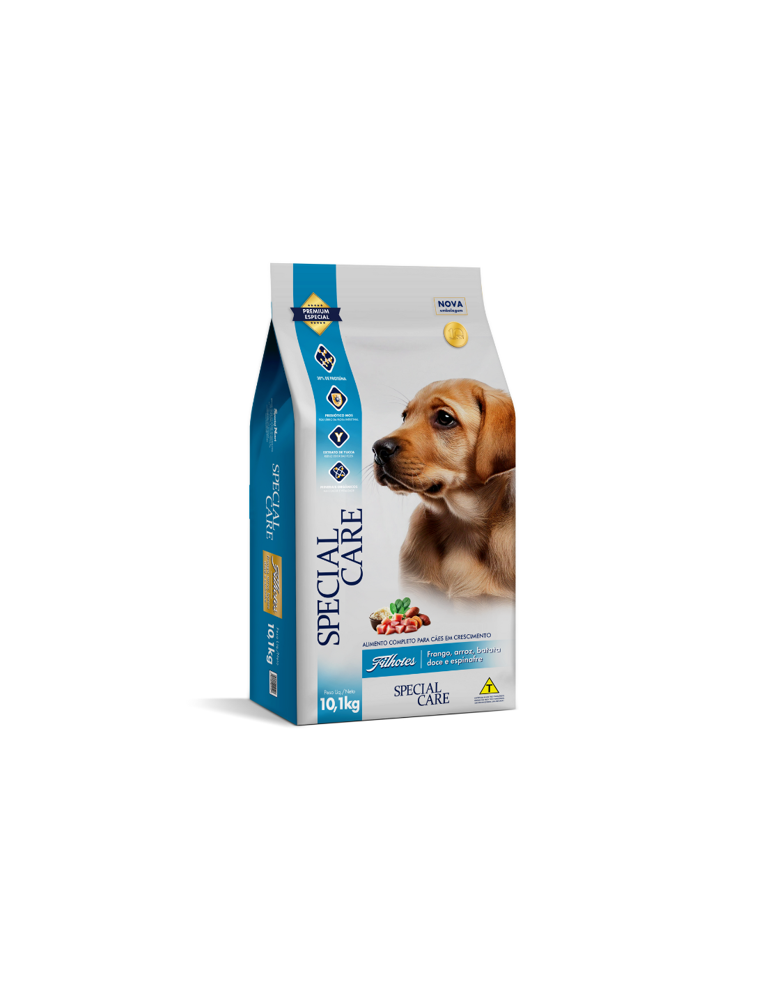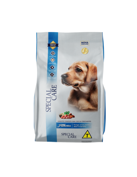 SPECIAL CARE CACHORROS es un alimento completo indicado para perros en crecimiento. Formulado y balanceado con ingredientes de alta calidad para satisfacer las necesidades nutricionales de tu cachorro. Altamente palatable, contiene prebióticos que mejoran la absorción de nutrientes, omegas 3 y 6 para una piel saludable y pelaje brillante, yucca que reduce el olor de las heces y está enriquecido con minerales orgánicos para brindar más salud y vitalidad.