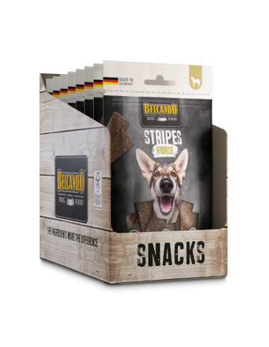 Las Stripes de caballo son ricas en sabor, fáciles de digerir y aún más fáciles de disfrutar. La experiencia del snack se completa con superalimentos ricos en nutrientes como la levadura de cerveza y el krill, así como hierbas aromáticas para aún más sabor.