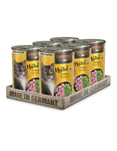 Mucha carne de pollo tierna y magra con despojos ricos en nutrientes y refinada con exquisitas espinacas: esta variedad es tan exclusiva como fácilmente digerible. El resultado es un menú que hará que hasta el gatito más exigente o sensible se sienta como en casa. Y también se cuida un pelaje sedoso: con aceite de salmón, que aporta ácidos grasos polyinsaturados.